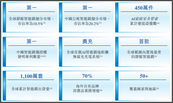 鹿客科技由此成为唯一一家小米投资并纳入生态链的智能锁企业,并依托ODM(即原始设计制造商)模式快速扩张。根据弗若斯特沙利文的资料,2024年,公司的静脉智能锁出货量位居全球第一,市占率10.5%;智能锁出货量位列全球第四,市占率2.6%;公司在中国公寓智能锁细分市场保持最大的市占率,约为20.2%。