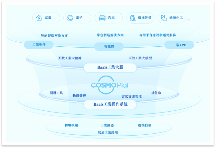 卡奥斯自主研发的COSMOPlat工业互联网平台,通过搭建工业智能软件与智能体应用、工业操作系统与工业大脑、物联系统与边缘计算深度融合的技术架构,向企业提供端云一体的数据智能和物联网产品及解决方案。