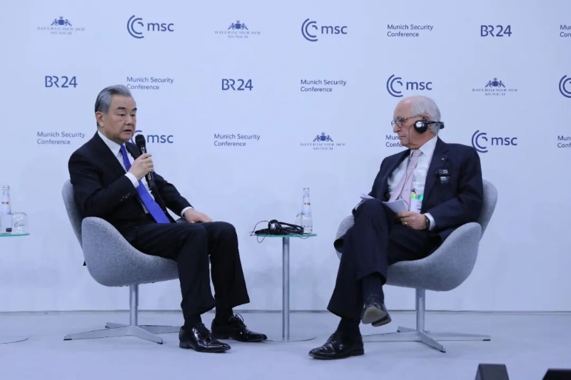 当地时间2026年2月14日,中共中央政治局委员、外交部长王毅出席慕尼黑安全会议,在“中国专场”发表演讲并回答现场提问。
