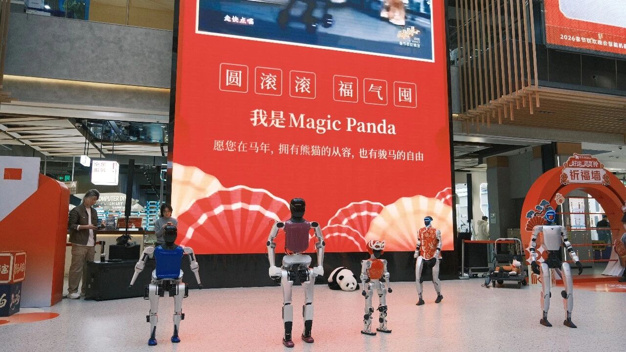 机器人消费热潮也延续至线下京东MALL。2月17日,京东MALL北京双井店开启新春首场机器人“粉丝见面会”,松延动力小布米、N2、E1和魔法原子机器熊猫等春晚同款机器人连夜跨场转运,京东物流采用全防震包装提供运输保障,让消费者能在大年初一和它们零距离互动。