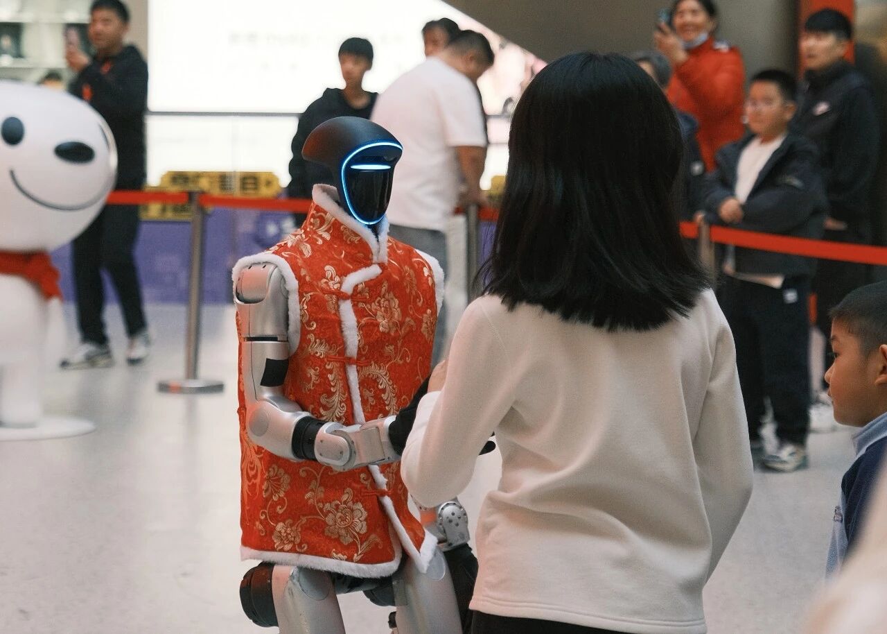 “孩子看到熊猫造型的机器人拜年特别开心,还排队和小布米合影,这样科技感十足的新年体验特别有意义。”特地带孩子前来和机器人互动的李女士表示。活动现场,机器人憨态可掬地作揖拜年,人们排起长队和机器人合影、握手,不少消费者咨询机器人购买与租赁事宜。