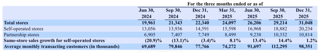 ▲瑞幸2024年二季度至2025年四季度的核心运营数据。