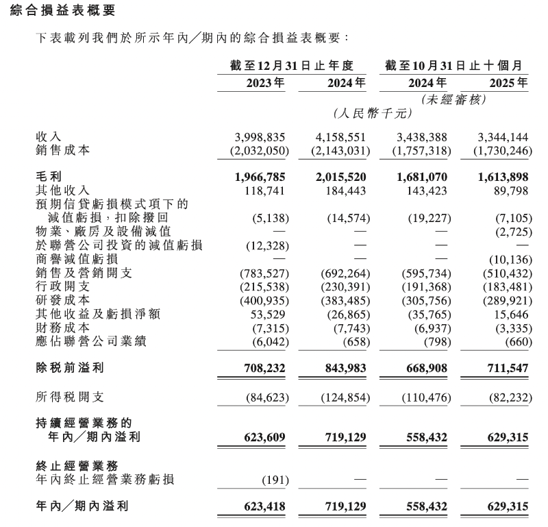 2025年前10个月,公司实现收入为33.44亿元,同比减少2.74%;期内溢利为6.29亿元,同比增长12.69%。
