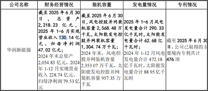 根据其2025年12月更新的招股书,截至报告期末,华润新能源控股的发电项目并网装机容量已达3873.22万千瓦,其中风电占比超66%。2025年上半年,华润新能源实现营业收入130.14亿元,归母净利润47.02亿元,业绩稳健。