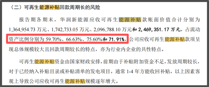 华润新能源也坦言,公司应收可再生能源补贴款项呈现总体规模较大且回款周期较长的特点,为行业内企业的共性。