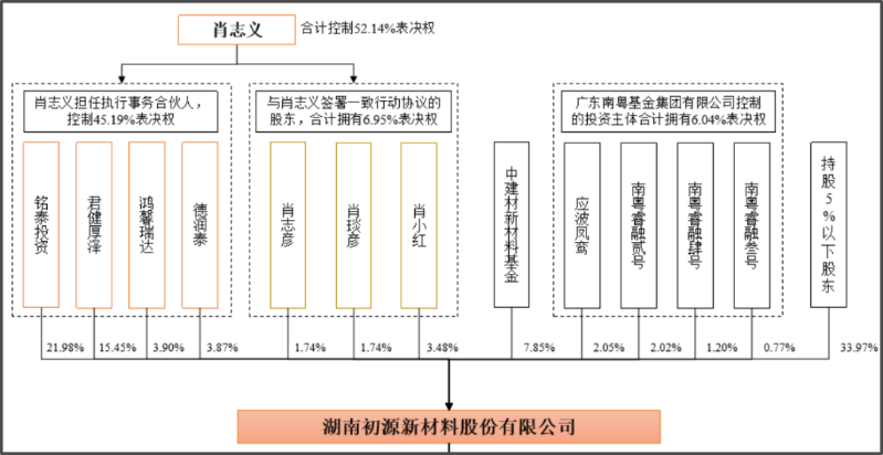 截至目前,肖志义及一致行动人合计持有初源新材52.14%的表决权,系实际控制人。