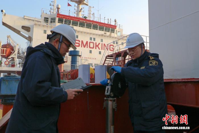 ▲济南海关所属东营海关关员对进口燃料油“分类周期抽检”模式进口船舶开展常规巡查,实地查看船舶卫生和货物装卸情况。吴玮 摄