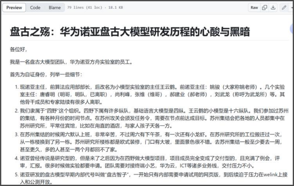 但更严峻的是,自称盘古项目成员的网民发长文,直指团队因算力不足和时间压力,套壳、成果包装、骨干流失、给骗子抬轿子等内幕。