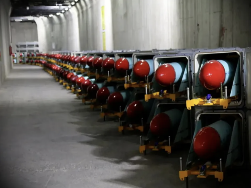 ▲伊朗“地下堡垒”内,大量导弹整齐摆放