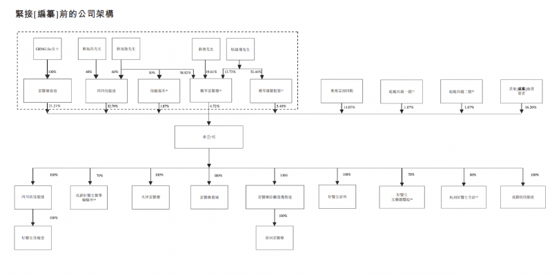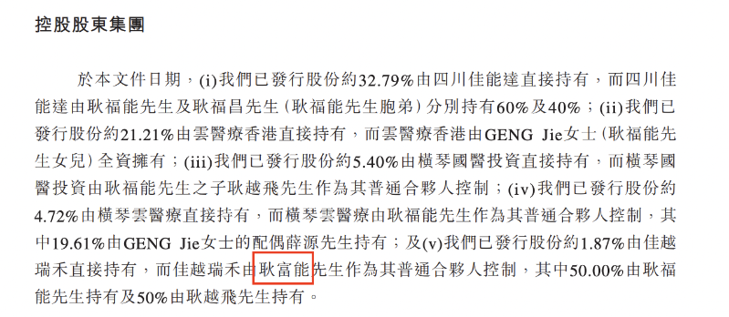 IPO前,GENG Jie、耿福能、耿福昌、耿越飞、薛源、四川佳能达、云医疗香港、横琴云医疗、横琴国医投资及佳越瑞禾共同有权控制于公司股东大会上约65.99%表决权的行使。