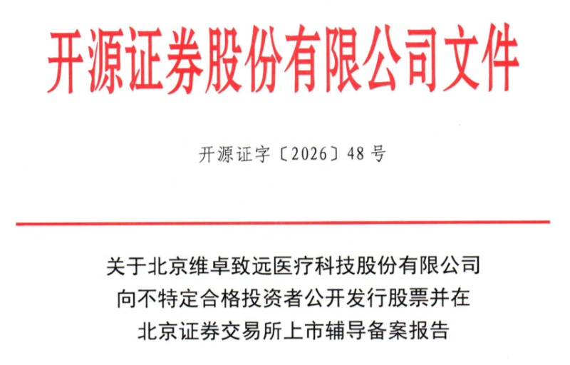 近日,北京维卓致远医疗科技股份有限公司(以下简称:维卓致远)在北京证监局完成IPO辅导备案,拟北交所上市,辅导机构开源证券。