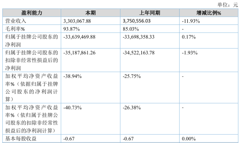 据新三板2025年半年报,维卓致远尚未盈利且持续亏损风险。2025年上半年,公司营收为330.3万元,较上年同期减少12%;归属于挂牌公司股东的净利润为3363.95万元,亏损略有收窄。毛利率为94%。
