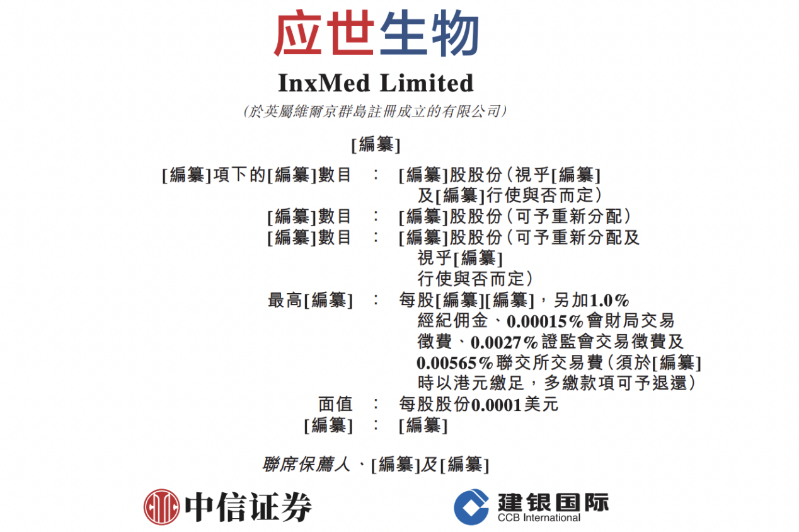4月21日,InxMed Limited(以下简称:应世生物)向港交所主板提交上市申请书,中信证券、建银国际为联席保荐人。该公司曾于2025年8月向港交所主板递表。