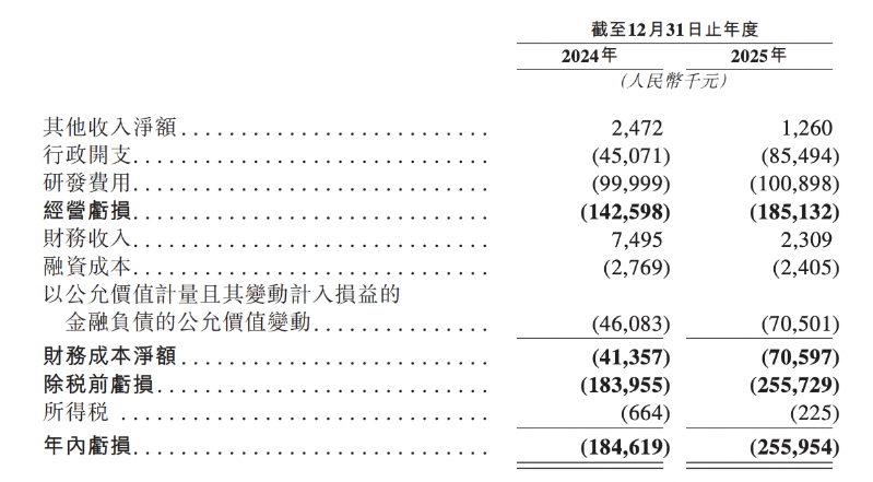 于往绩记录期间,应世生物现时并无产品获准进行商业销售,且并未自产品销售产生任何收益。2024年、2025年,应世生物其他收入净额分别为247.2万元、126万元,年内亏损分别为1.85亿元、2.56亿元。