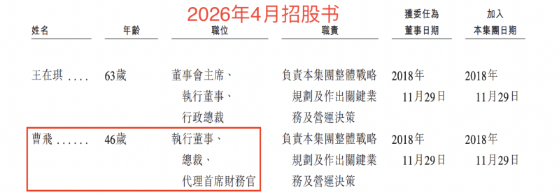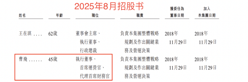 瑞财社注意到,对照两版招股书发现,曹飞已由首席运营官升任为总裁。目前,曹飞担任公司执行董事、总裁、代理首席财务官。