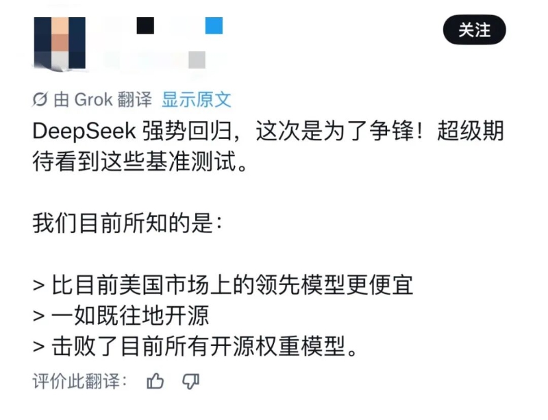 距离去年1月的大版本更新已经过去了15个月,DeepSeek这次在海内外全网发布大更新后,热度飙升。海外社媒有不少网友也第一时间关注了DeepSeek的更新,在DeepSeek 评论区,大家纷纷表示,“鲸鱼回来了”“便宜又强大”“这太震撼了,如果那些效率突破成立的话”。