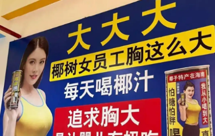 网友晒椰树广告图被指低俗:“女员工胸这么大”引争议