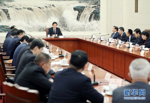 中共中央政治局委员、全国人大常委会副委员长王晨主持座谈会。