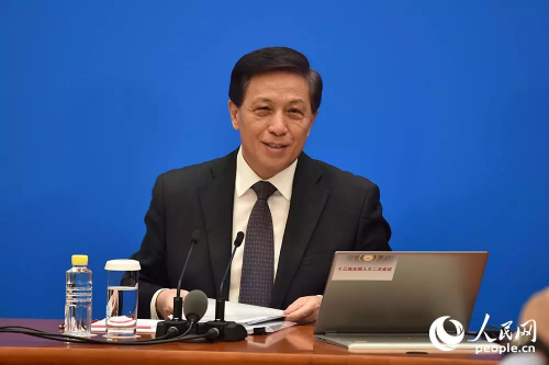 大会发言人张业遂。(人民网记者 翁奇羽 摄)