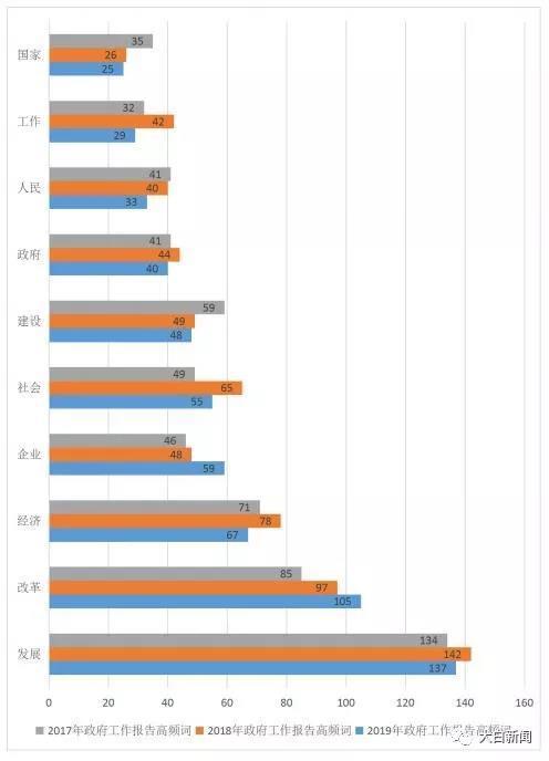 此外,大白新闻还从报告中梳理出了部分高频词(据媒体报道,这些高频词是自1978年到2018年,近40年的政府工作报告中的常青词汇),分别是: