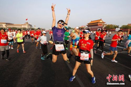 资料图:2021年北京国际长跑节—北京半程马拉松。图为运动员在比赛中。 中新社记者 富田 摄