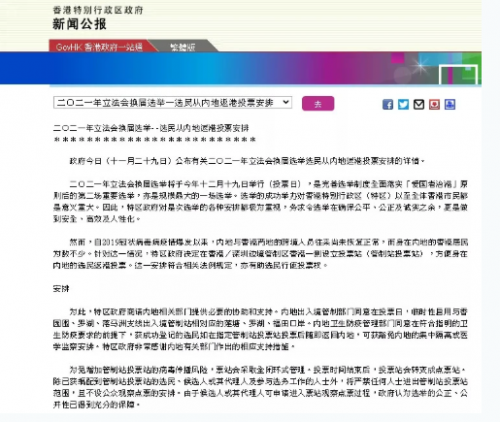 香港立法会换届选举将在12月19日举行,香港政制及内地事务局今(29日)公布选民从内地返港投票安排详情。特区政府商请内地相关部门提供必要的协助和支持。内地出入境管制部门同意在投票日,临时性启用与香园围、罗湖、落马洲支线出入境管制站相对应的莲塘、罗湖、福田口岸。内地卫生防疫管理部门同意在符合指明的卫生防疫要求的前提下,获成功登记的选民如在指定管制站投票站投票后随即返回内地,可获豁免内地的集中隔离或医学监察安排。特区政府非常感谢内地有关部门作出的相应支持措施。
