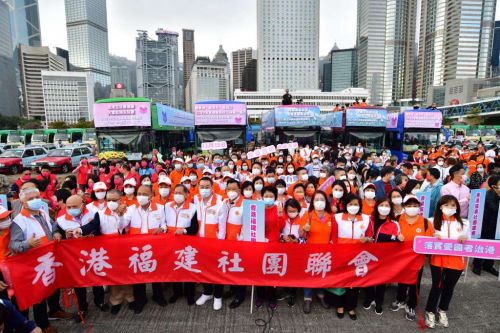 香港广东社团总会、香港福建社团联会、香港广西社团总会、香港海南社团总会及香港浙江省同乡会联合会等共26个社团,今日在港九、新界各地举行“2021全港省级社团支持立法会选举花车大巡游”,呼吁选民履行公民责任,踊跃参与立法会选举投票,选出爱国爱港、德才兼备的治港人才。车队共涉约100部车,由巴士、货车、小巴、七人车及的士组成,车队将分多条路巡游港九、新界地区。