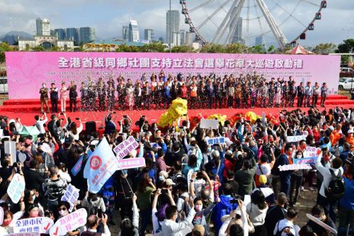 星岛环球网消息:据《星岛日报》报道,立法会换届选举将周日(19日)举行,近26个社团合办“全港省级同乡社团支持立法会选举花车”大巡游,今早进行启动礼。大巡游车队约涉100部车,将分5路巡游港九新界。