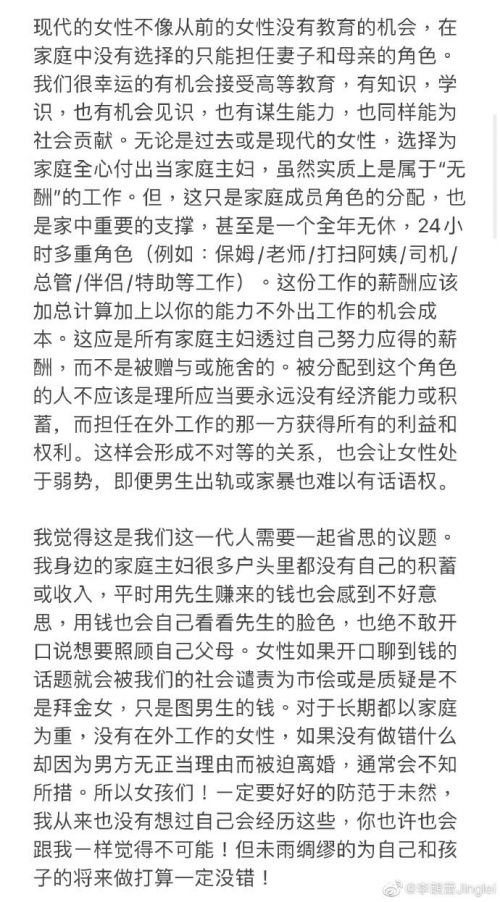 附:李靓蕾发布的长文内容