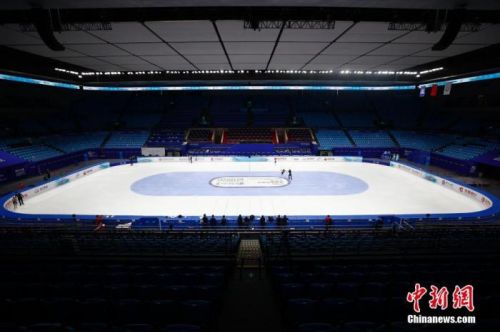 4月8日,“相约北京”冰上项目测试活动花样滑冰比赛在北京的首都体育馆进行,这是该场馆完成冬奥改造后的首次亮相。 中新社记者 富田 摄