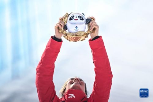 2月15日,中国选手谷爱凌在颁发纪念品仪式上。