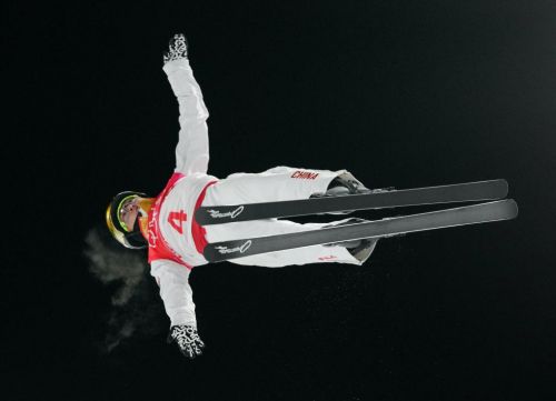 2月16日,中国选手齐广璞在北京冬奥会自由式滑雪男子空中技巧决赛中。新华社记者朱峥摄