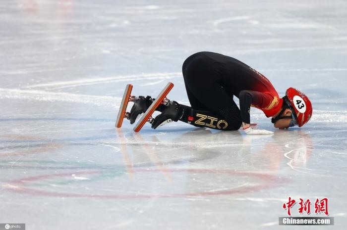 2月13日,北京冬奥会短道速滑女子3000米接力决赛举行。由范可新、张雨婷、张楚桐和曲春雨组成的中国队,在决赛中滑出了4分03秒863,收获一枚铜牌。图为范可新赛后亲吻冰面。 图片来源:ICphoto