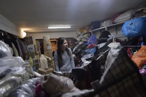 2月26日,在俄罗斯顿河畔罗斯托夫市,志愿者整理当地居民为来自顿巴斯地区难民捐赠的物资。新华社发(安德烈摄)