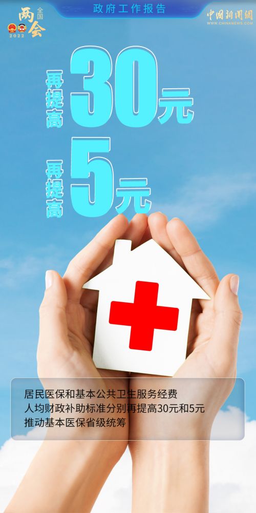 居民医保和基本公共卫生服务经费人均财政补助标准分别再提高30元和5元,推动基本医保省级统筹。