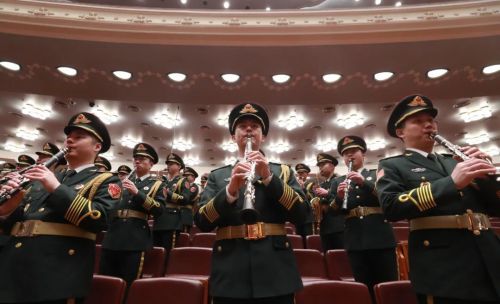 3月10日,中国人民政治协商会议第十三届全国委员会第五次会议在北京人民大会堂举行闭幕会。这是军乐团在演奏。新华社记者 卢烨 摄