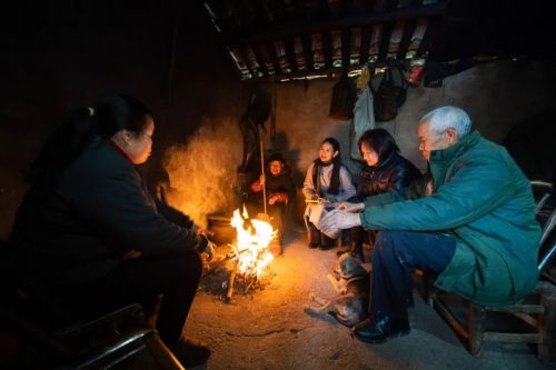 在湖南省常德市鼎城区草坪镇枫林口村,全国人大代表杜美霜(右三)入户与当地村民交流(2月16日摄)。新华社记者 陈思汗 摄