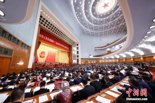 3月8日,十三届全国人大五次会议在北京人民大会堂举行第二次全体会议。中新社记者 盛佳鹏 摄