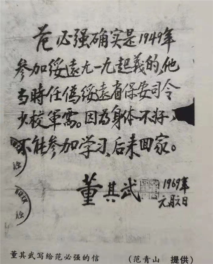 绥远起义成功后,董其武感慨万千,赋诗抒怀:为迎春风排万难,义旗终插青山巅。弃暗投明党指路,起死回生恩胜天。从今矢志勤改造,他日立功赎前愆。任务不计多艰苦,喜见万民解倒悬。