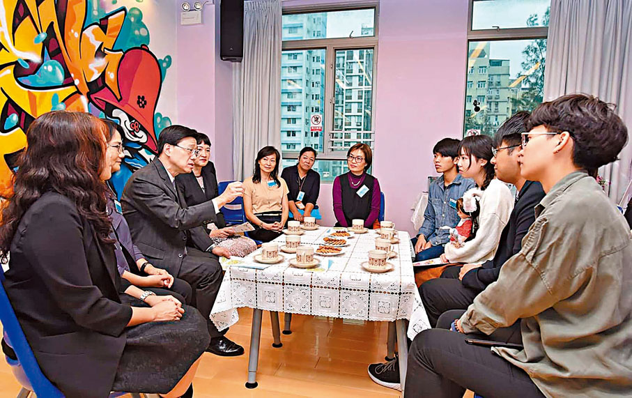 2018年,李家超到访东华三院屯门综合服务中心,聆听青年的分享。 资料图片