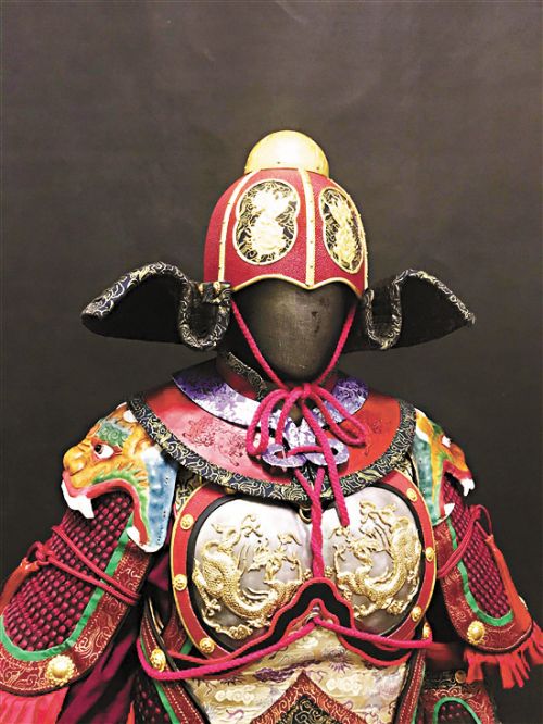 “眼前这套金光灿灿的甲胄名叫大汉将军仪仗甲,是明朝早期高规格的甲胄,适合重大典礼使用。”何东明说,甲胄作为将士的防护性兵器,类似于现代战争中的防弹服。