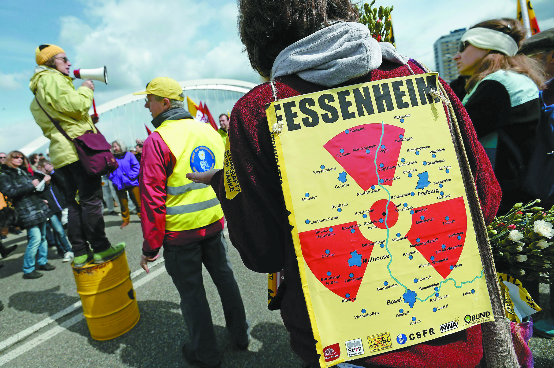 核能使用的数十年来,关于核能该用该禁一直争议不断。图为法国和德国的反核人士参加切尔诺贝尔核灾难纪念活动。法新社资料图片