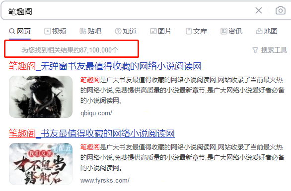 尽管“笔趣阁”已被查封,但更多披着“笔趣阁”外衣的盗版平台依旧活跃于世,它们借着“笔趣阁”的名气,不用养活作家,也不用花推广的钱,就能获取大量用户。每经记者在搜索引擎里输入“笔趣阁”后,看到相关结果多达8710万个。