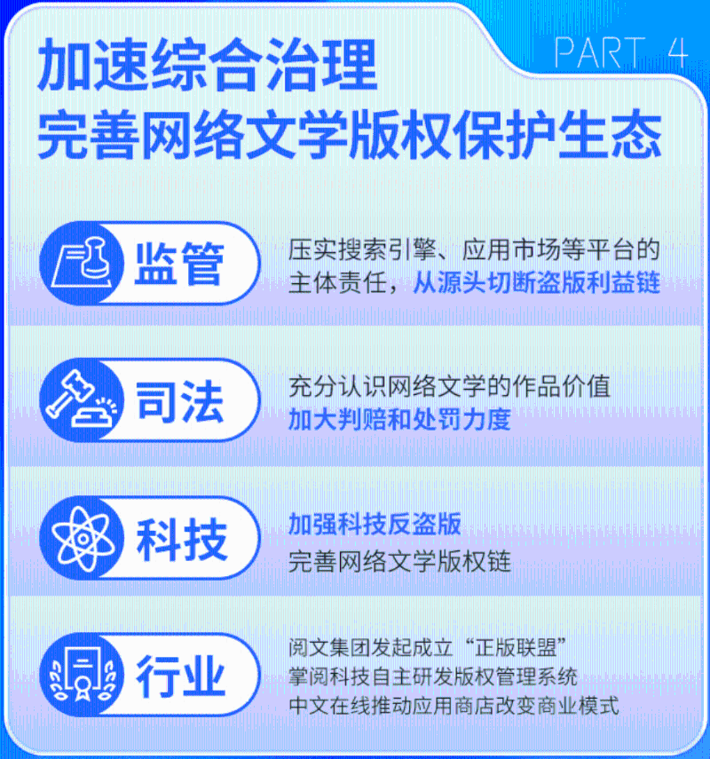 每经记者注意到,自2016年开始,阅文与作家及合作伙伴联合成立了“正版联盟”,陆续出台多项盗版打击举措;掌阅科技也推出了自主研发的版权管理系统。