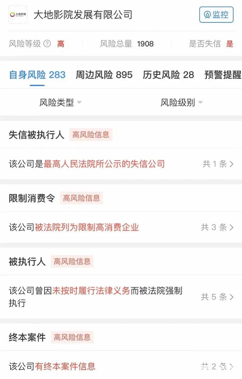 值得注意的是,这是五月以来,大地影院新增的第三条被执行人信息。从时间上来看,今年大地影院多次被执行,且曾因未按时履行法律义务而被法院强制执行十余次。