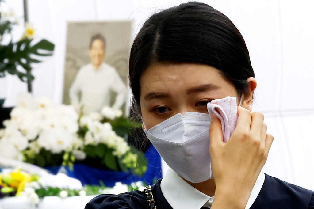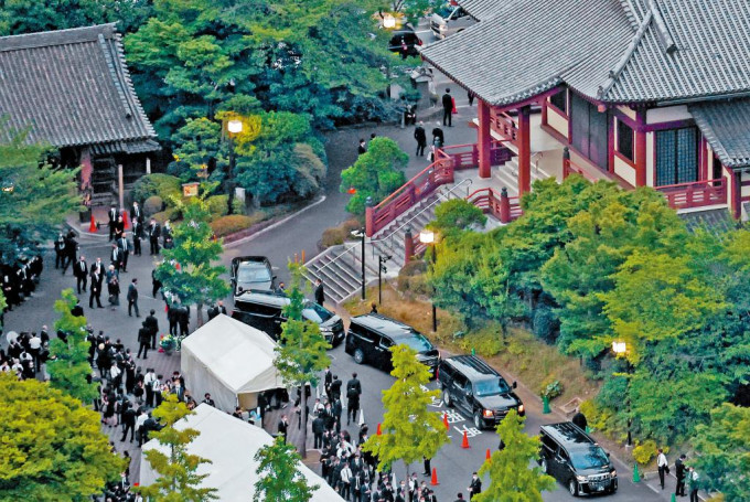 安倍晋三的守灵仪式在东京增上寺举行,昨日有人群聚集。