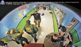 德州小学枪击案的最新现场片段曝光,显示警员在课室外迟迟未攻入枪手所在的课室,在走廊等候了长达77分钟。