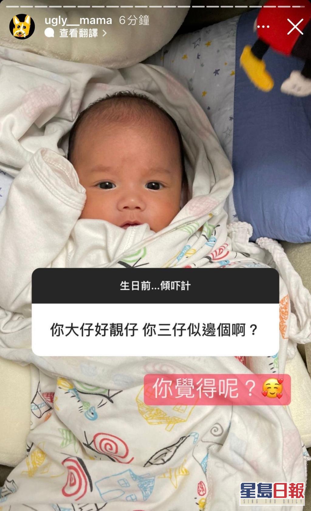 此外,又有网民送上祝福︰“希望Steven可以生性啲帮你分担多啲,等你唔好咁辛苦。”雯雯则贴出了一张老公拖着囝囝的照片谓︰“希望可以承你贵言。”问到有何庆祝计划,她又表示只希望买好东西给爱犬、去连锁怏餐店食快餐、影一张全家福及在家简简单单食一餐饭已满足,所有计划都似乎十分卑微。至于会否想追女,雯雯虽然表示现在有3个囝囝已很满足,但却未有一口否定,似乎跟老公想法一致。