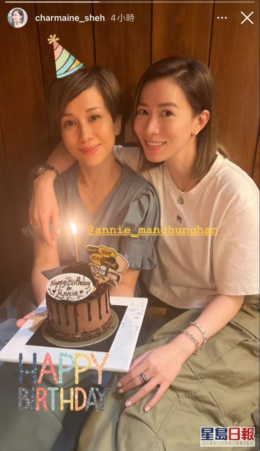 另外佘诗曼亦非常有心,踏入零时便在社交网贴与Annie合照送祝福,并写道:“我非常感谢你和我们一起过的所有时光,我最好的朋友生日快乐”。而未能出席的汤盈盈,亦贴出与寿星女提早庆生的合照,并道写:“祝你生日快乐,我其中一位最好的朋友”。