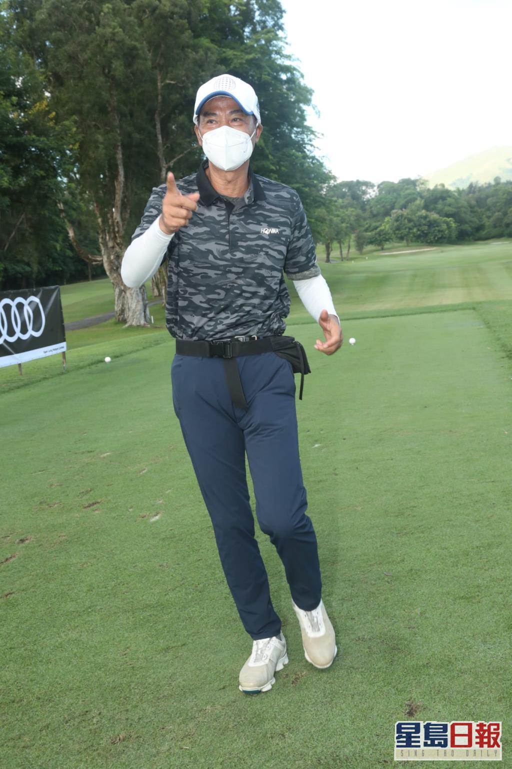 任达华(华哥)确诊新冠肺炎后首次出席公开活动,今早他到上水参与“仁济慈善高尔夫球赛”活动。